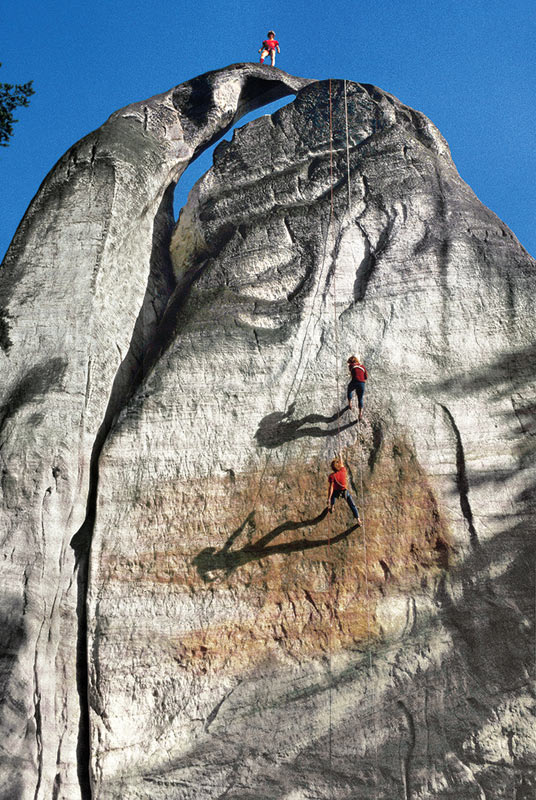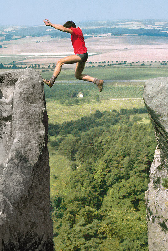 Der Prager Kletterer, Kameramann und Profifotograf Karel Vlček dokumentierte vor allem das Extremklettern der Jahre 1968 - 1988 in den Sandsteingebieten Tschechiens. Am bekanntesten ist er als Fotograf von Sandsteinsprüngen. Seine spektakulären Bilder sind keine Reportagefotos sondern aufwendig inszinierte, manipulative Kunstwerke. Er brachte mutige Kletterer dazu, Sprünge zu machen, die manchmal sogar im Krankenhaus endeten, als ob sie machbar wären. Und mancher seiner Protagonisten sagte: "Ich springe nur einmal für Dich".